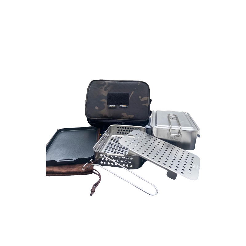 • 키녹스 캠핑 반합 패키지 (캠핑반합/찜판/튀김바스켓/불판/반합가방) 블랙멀티카모